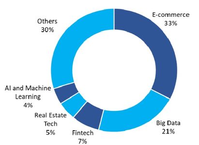 A $350-million investment in Impetus Technologies propelled big data to the second spot, with the entire amount coming from a single deal. Fintech climbed to third place, securing $119 million across 18 transactions.